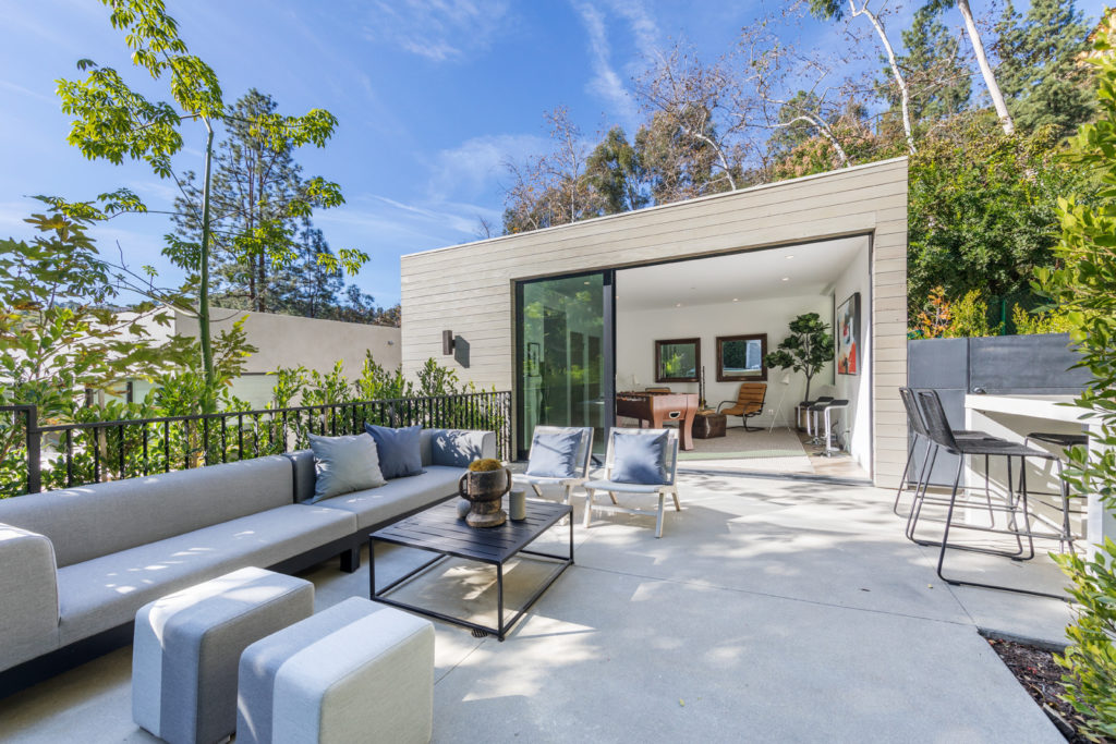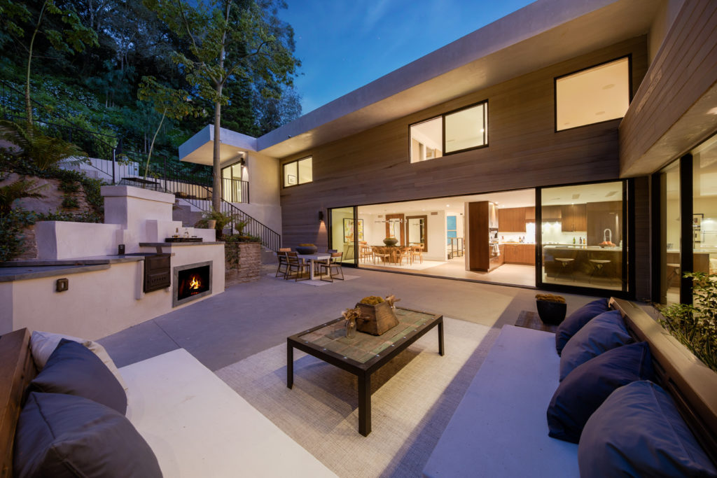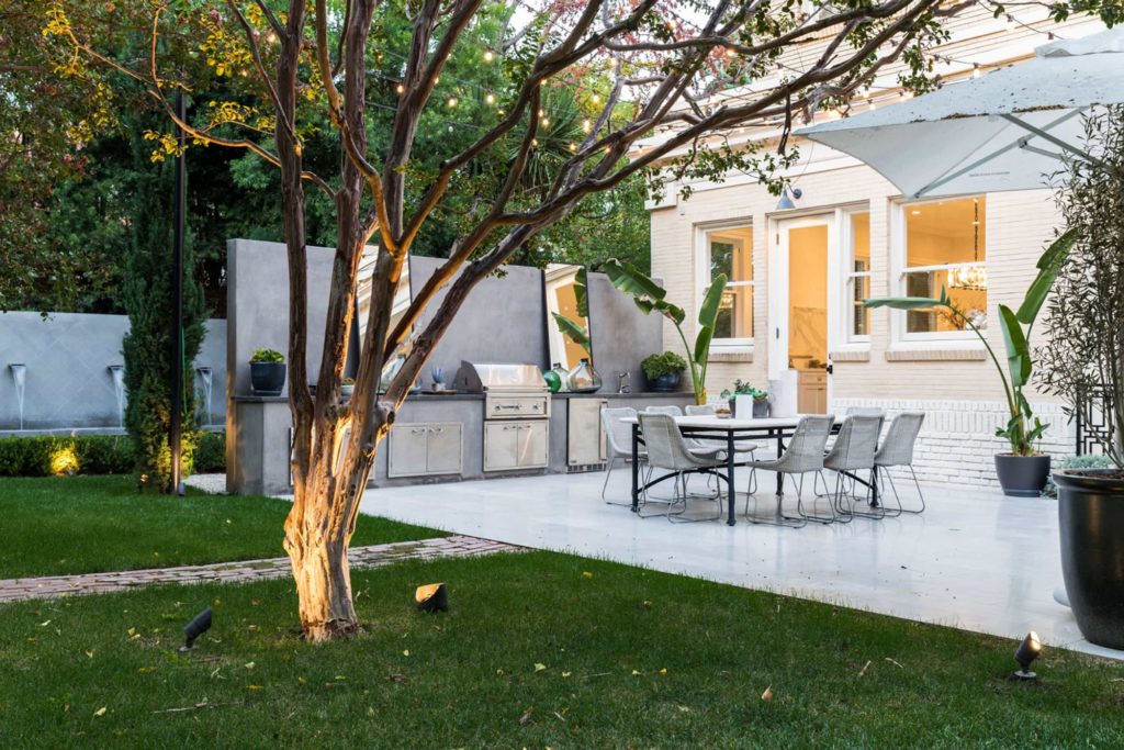 Large outdoor spaces are ideal for entertaining. Whether you are hosting a full on dinner party or cocktails and hors d’oeuvres, be sure create plenty of space for guests to mingle. Consider incorporating comfortable outdoor seating, an outdoor bar, and ample locations for guests to set down their drinks.